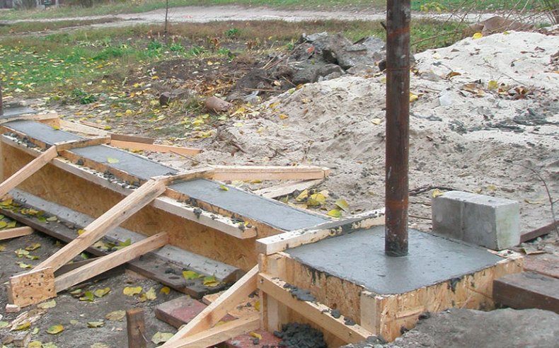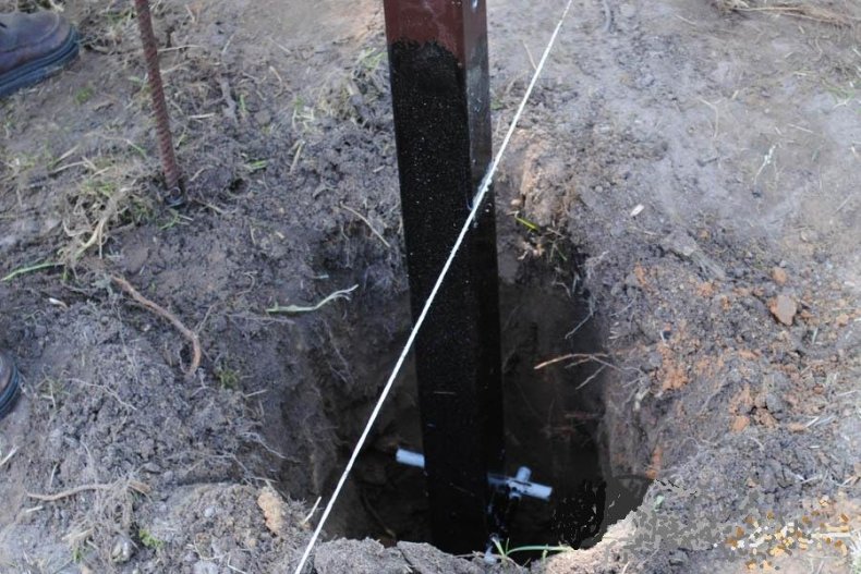- В них устанавливаются трубы 2,5 метра длиной, служащие опорами и заливаются бетоном.