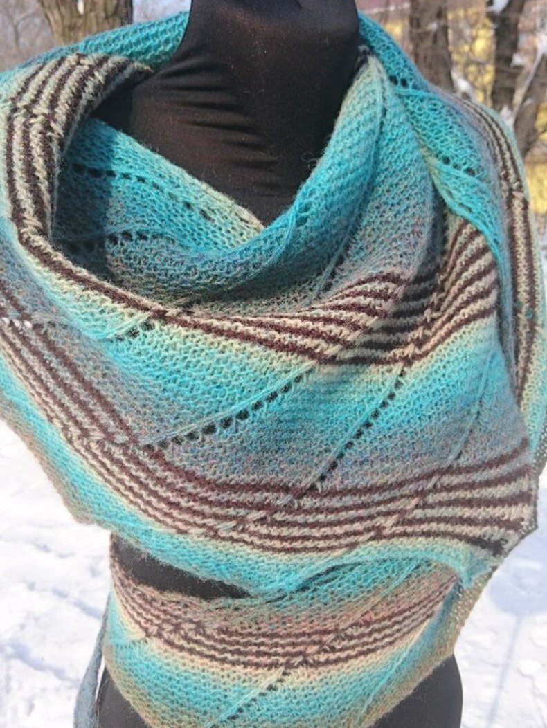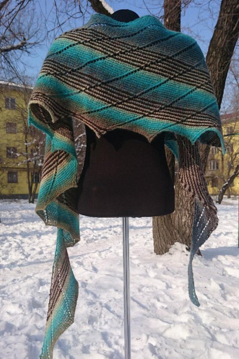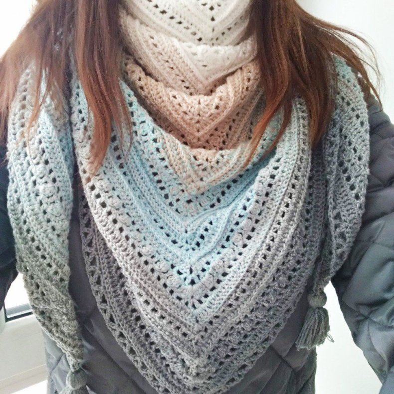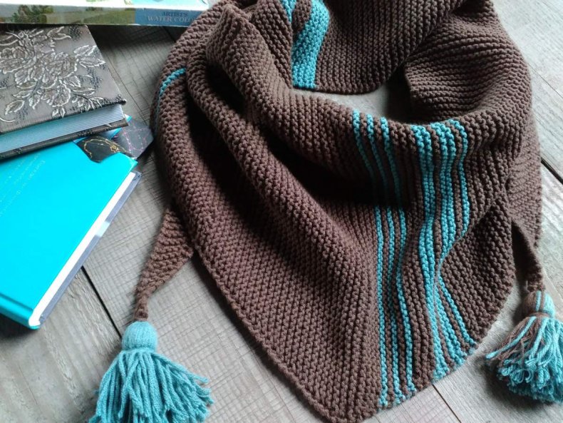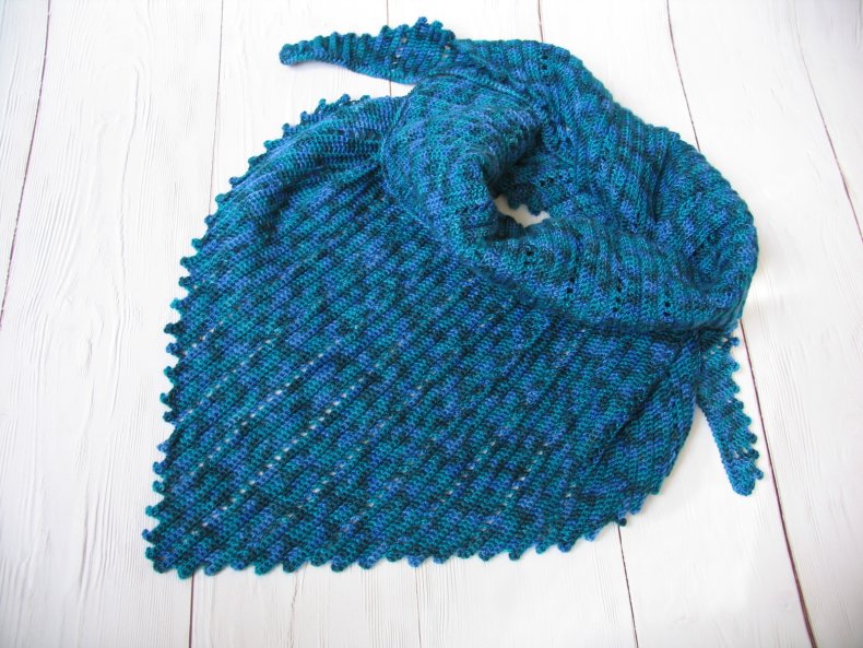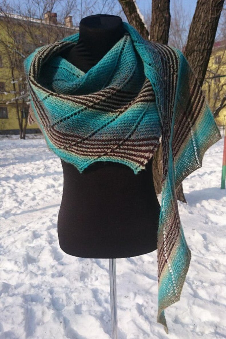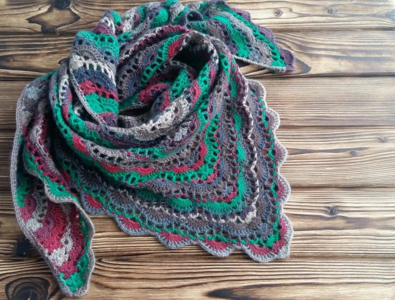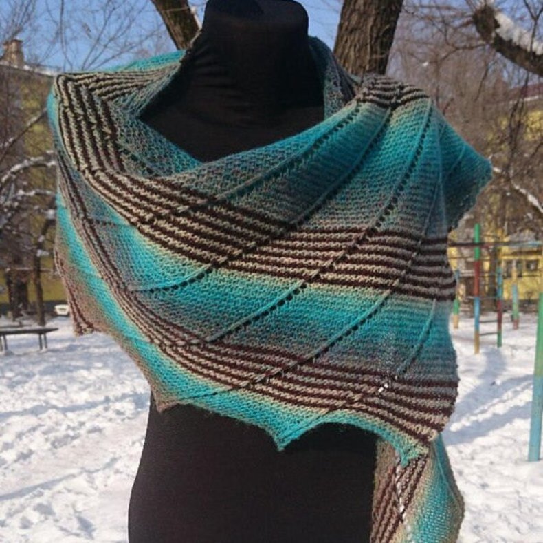 Подобные аксессуары можно связать спицами или крючком. Вне зависимости от выбранного варианта изделие вязать легко и очень быстро. В общем, треугольный шарф может быть большим или маленьким.