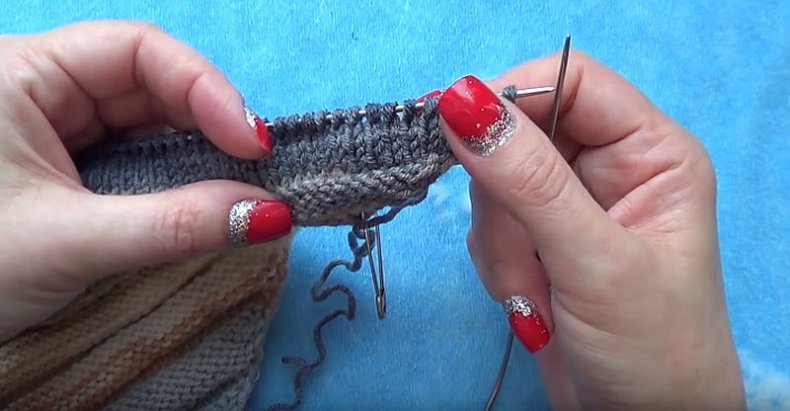 - Переверните иглу и приступайте к вязанию лицевых петель. Учтите, что все шторы также должны быть лицевыми. Это сделает край изделия гибким и красивым.