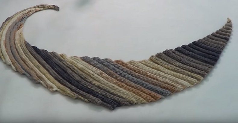 - При вязании бактуса спицами обязательно добавляйте петли. Чтобы скруглить шарф, добавьте петлю в каждый 2-й ряд с внутренней стороны и закройте по одной в начале каждого 6-го ряда с внешней стороны.
