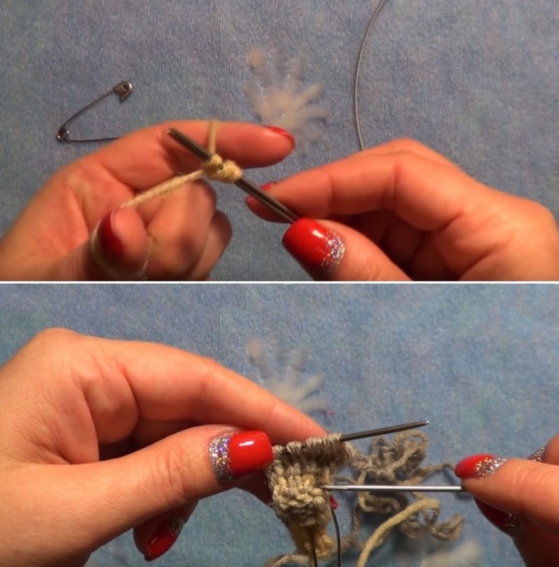 С этим аксессуаром можно брать совершенно разные нитки, но учтите, что толщина игл также будет зависеть от толщины ниток. Начать стоит с 4 петель. Прибавить провязанные лицевые петли и дойти до 5-го ряда. Провязав 2-ю петлю, зацепите нить предыдущего ряда между петлями 2-й и 3-й.