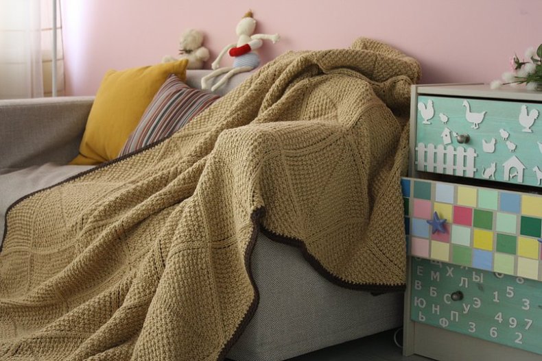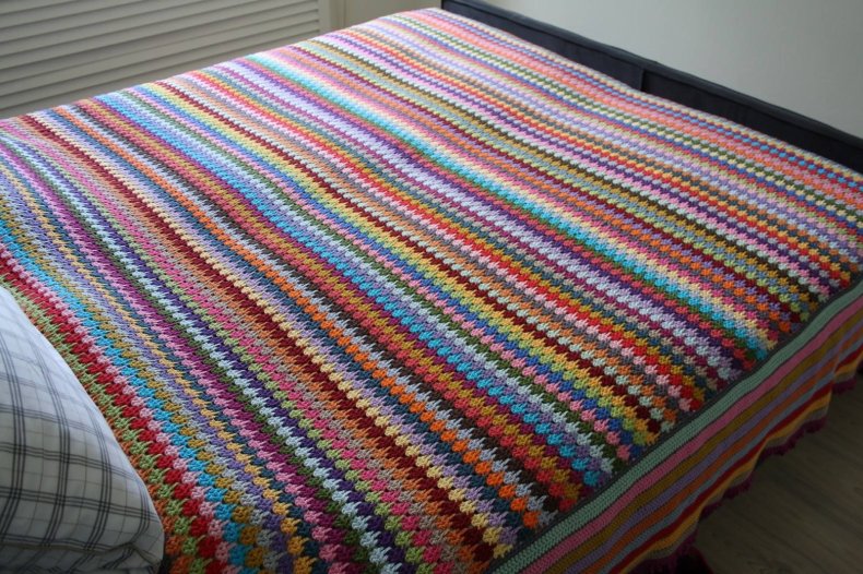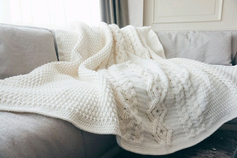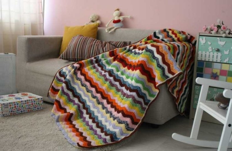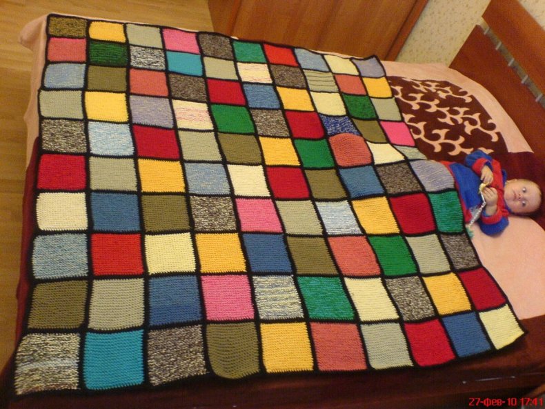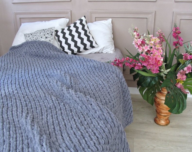 - У кого день расписан по минутам, на детское покрывало не хватает и трёх месяцев. А кто-то за две недели свяжет полноценный плед-палантин.