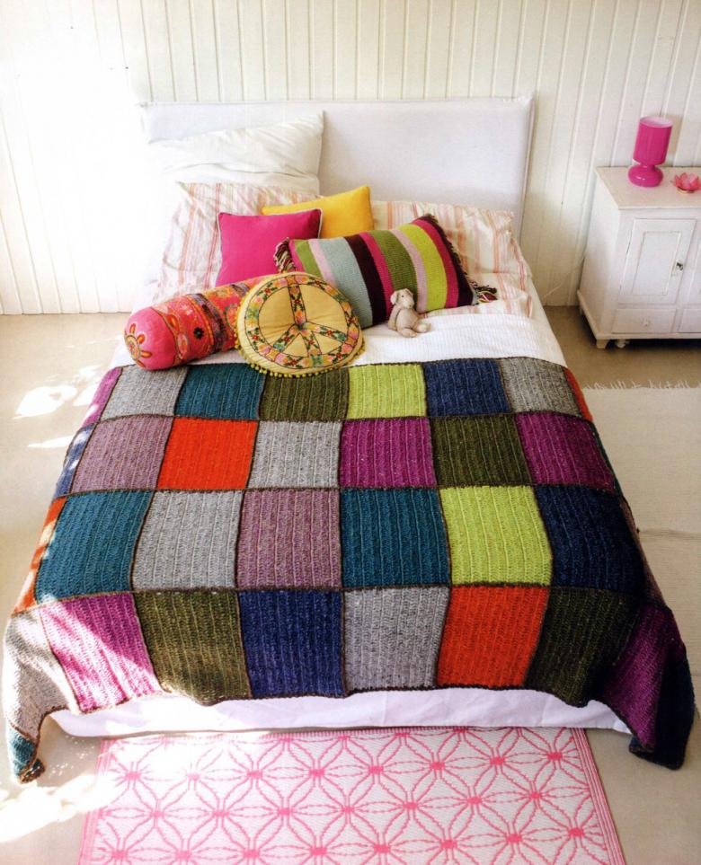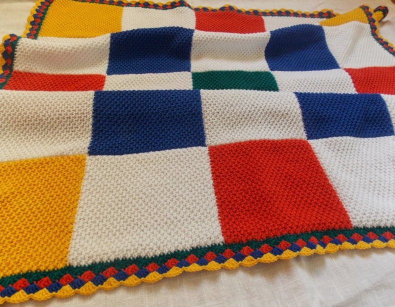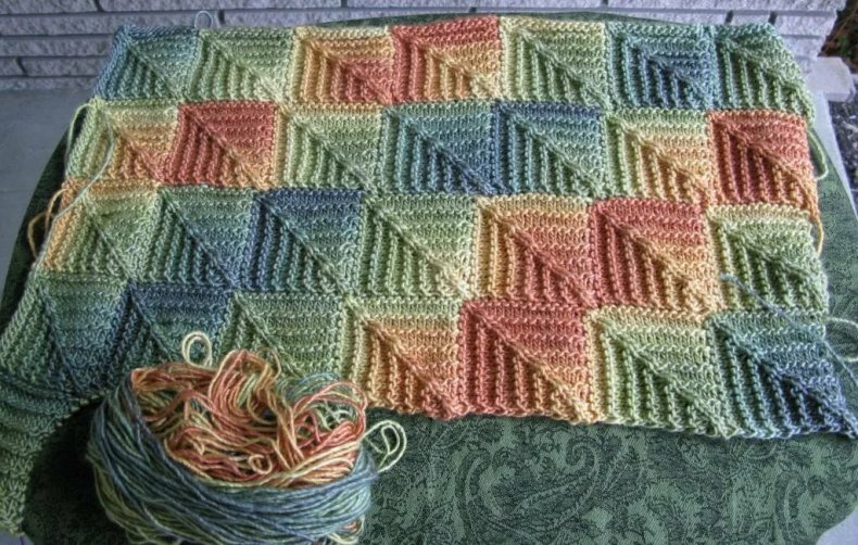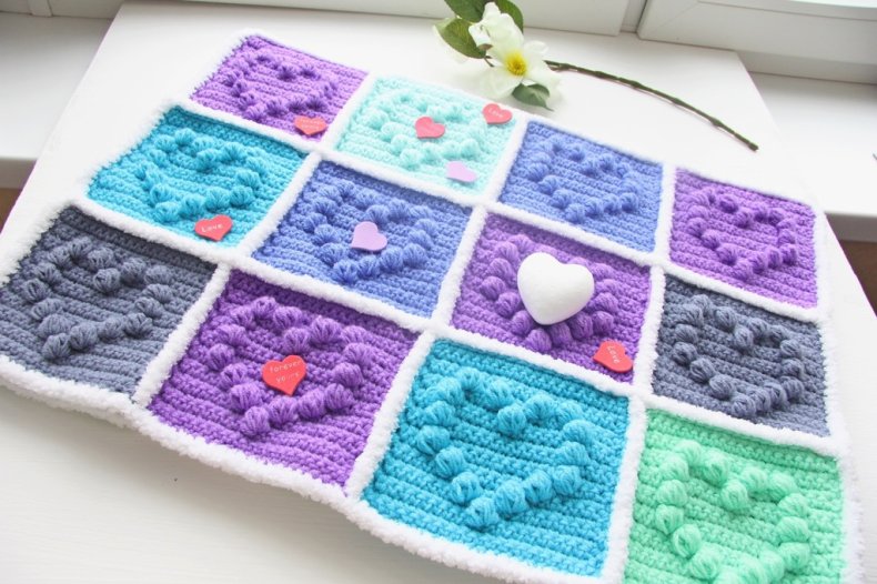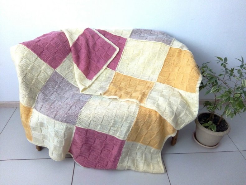 - Подходят для детских покрывал, палантинов, равно как и для отдельных фрагментов больших пледов – в случае, если изделие собирается из отдельных модулей-кусочков.