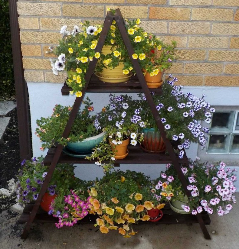 - Если растения примыкают к стене дома, то более подходящим расположением будет «лесенка» – когда более высокие растения высаживают на задний план, а более низкорослые – на передний.