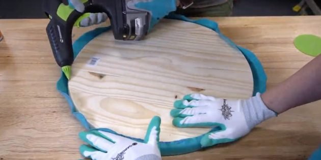 Кусок поролона размером 30 на 60 см плотно свернуть, придавая ему форму валика. Чтобы не развернулся, зафиксировать клеем или клейкой лентой. Обернуть куском войлока или ткани. Концы прошить крепкой нитью.