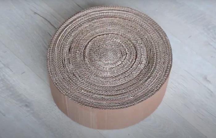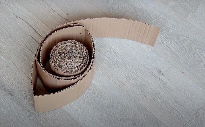 - Второй вариант когтеточки из картона – полоски из картона нужно свернуть.