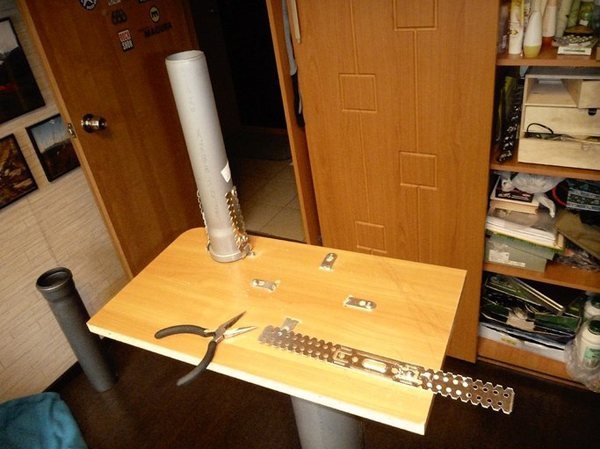 Если не позволяет размер жилплощади, не хочется портить стены и углы (просверливая в них дыры), нет в наличии нужных материалов, на помощь может прийти обычный кухонный стол.