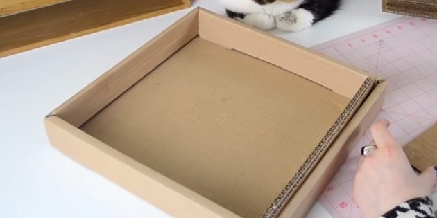 - Взять невысокую прямоугольную коробку или другое основание(может быть тонкая дощечка, кусок фанеры).