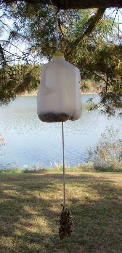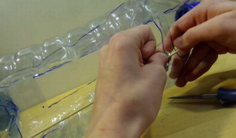 Если тара будет висеть вертикально, то отверстия проделываются в крышке. Для горизонтального положения тару придется прокалывать над проемами.