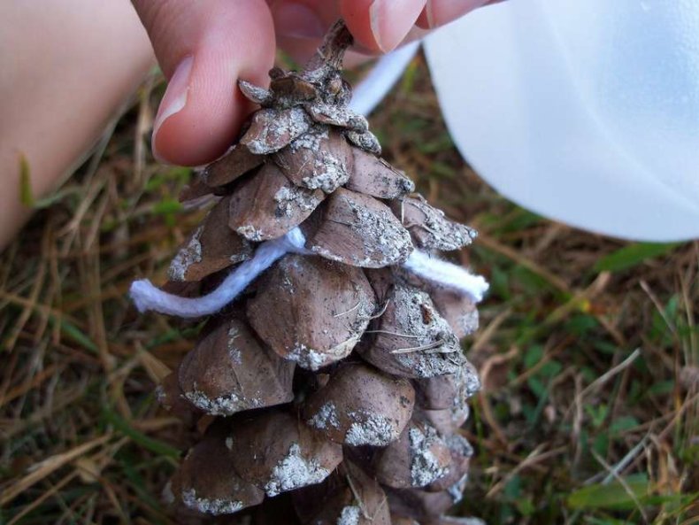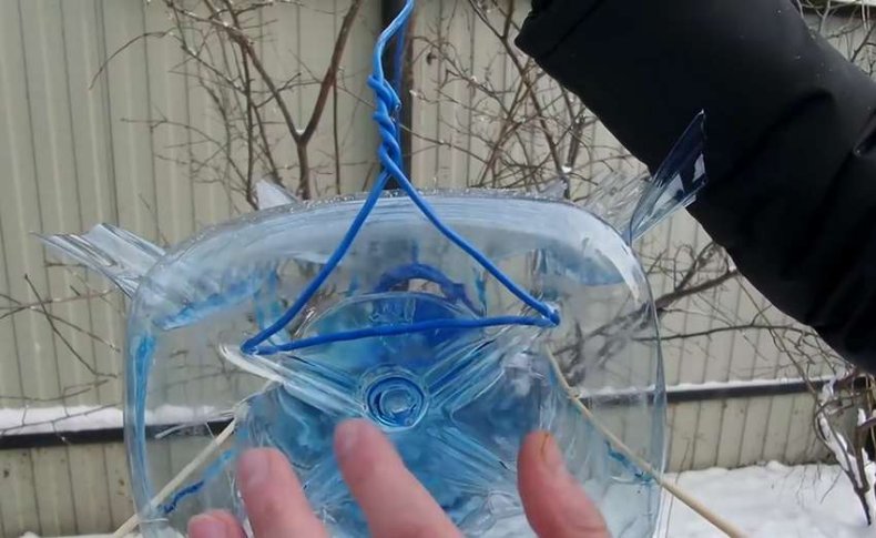 - Крышка с проволокой или веревкой закручивается – кормушка готова к подвешиванию.