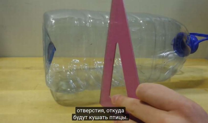 - В кормовой (горизонтальной) бутылке срезается проем для птиц;