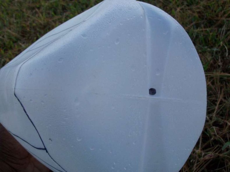 - Бутылка устанавливается на тарелку, чтобы над готовыми отверстиями на дне тары можно было проделать новые (это не так сложно, когда есть несколько проемов);