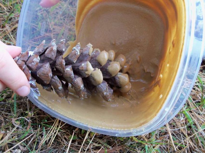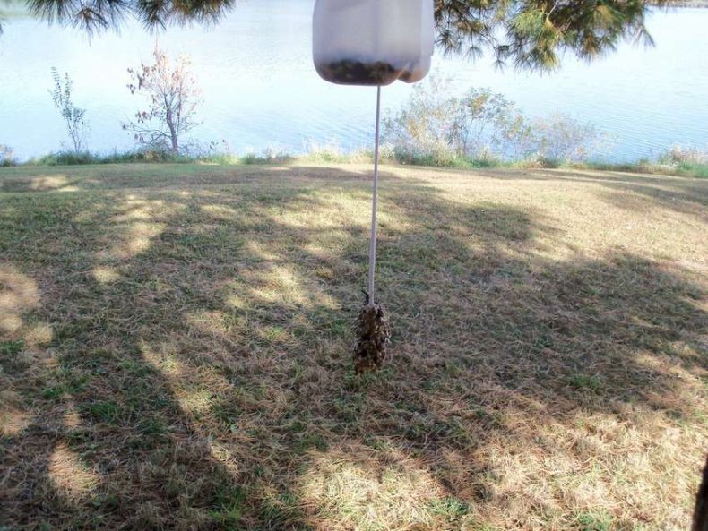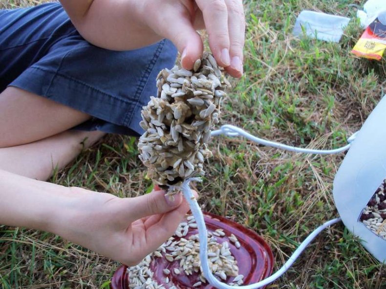- Воронку остается углубить в кольцо и заполнить кормом.
