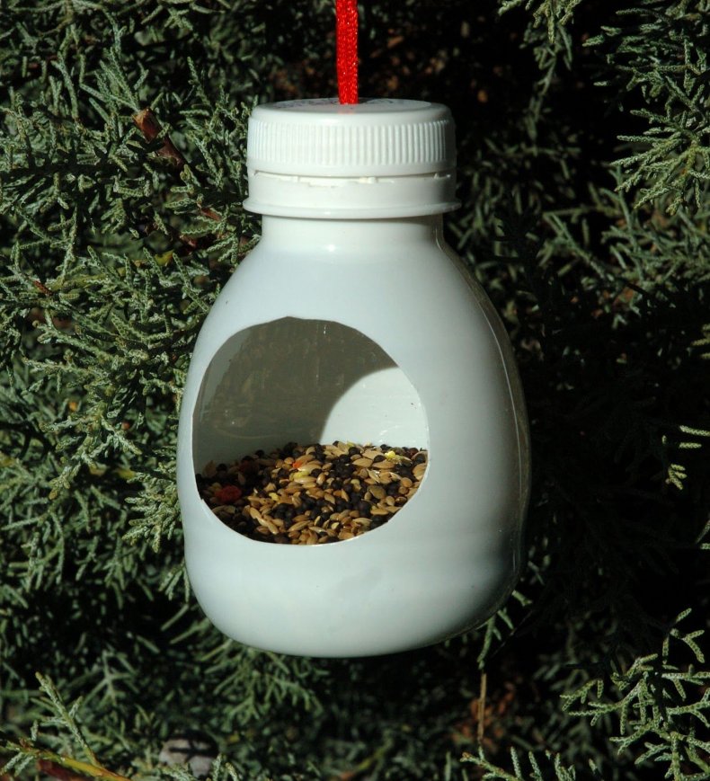 Кормушка из пластиковой бутылки 1,5 и 5 литров для птиц. Простой поэтапный мастер-класс по изготовлению пластмассовой кормушки