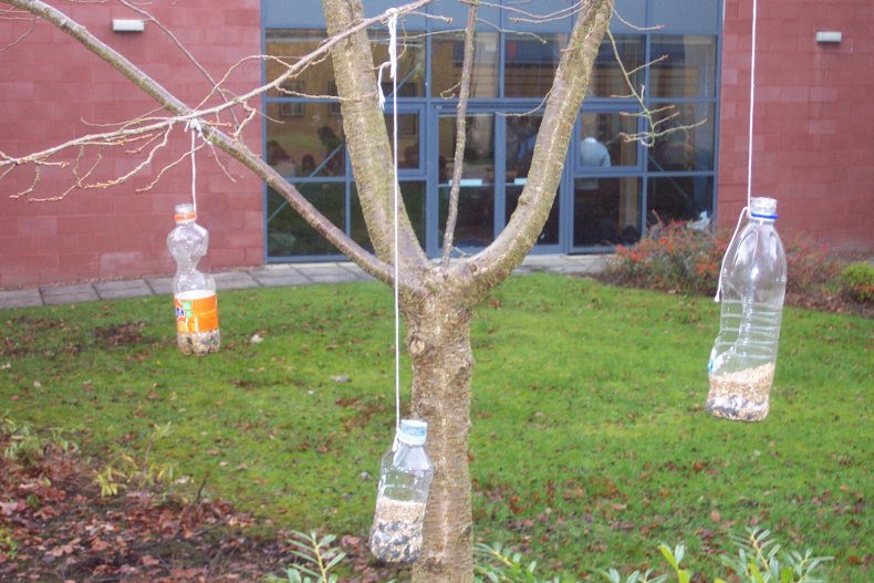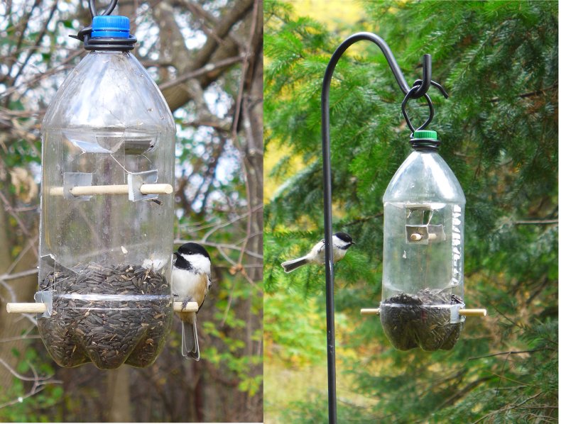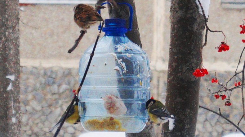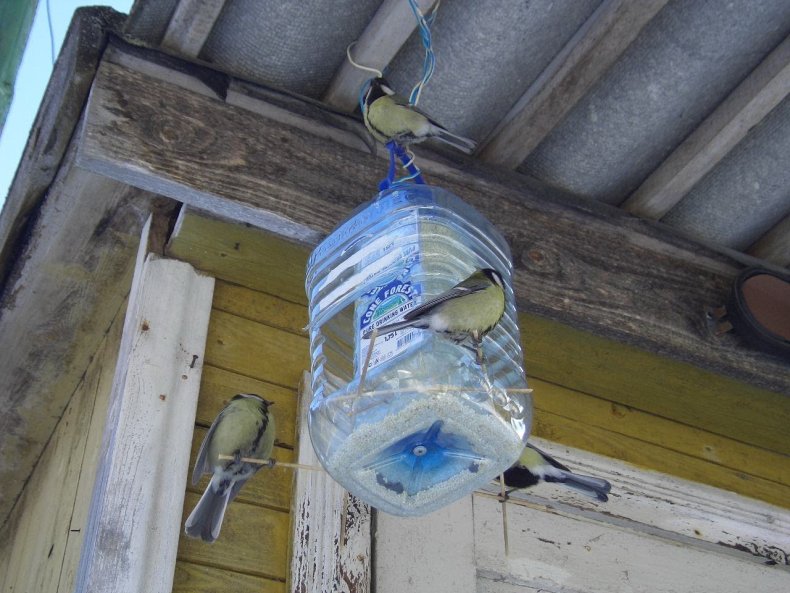 Если корма так же много, как бутылок, то последние можно собрать в птичий дом: