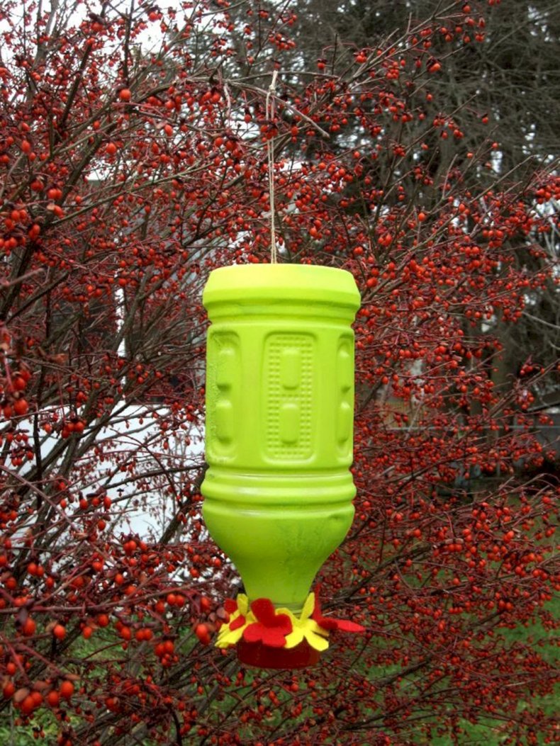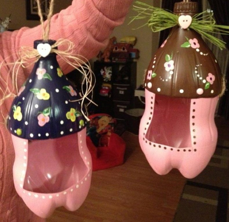 - В-четвертых, декорировать тару надо в крайнем случае, т.к. яркие цвета поначалу отпугивают птиц.