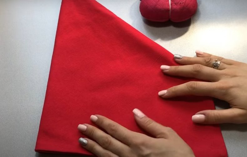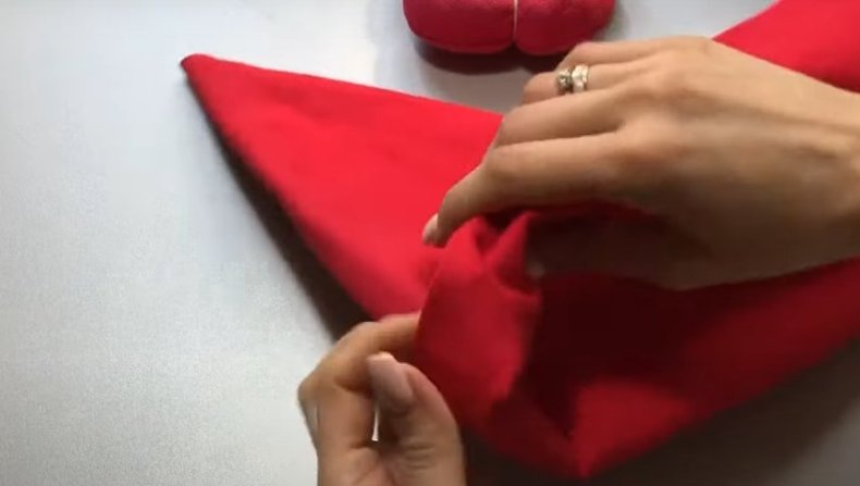- Шапку-чепчик представляют уже две детали. Это прямоугольники разной длины, самый большой из которых является верхней частью.