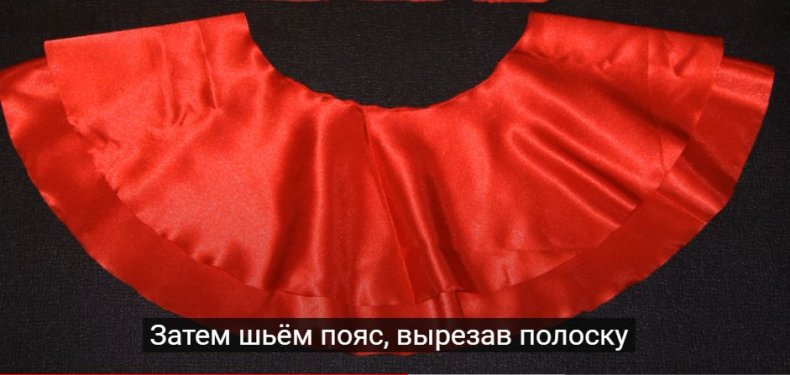 Как правило, его кроят из белой или красной ткани. Обшивается кружевом, тесемкой или оборками.