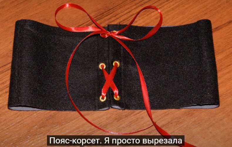 - Если жилет состоит из нескольких частей, то корсет представляет собой полосу со шнуровкой.