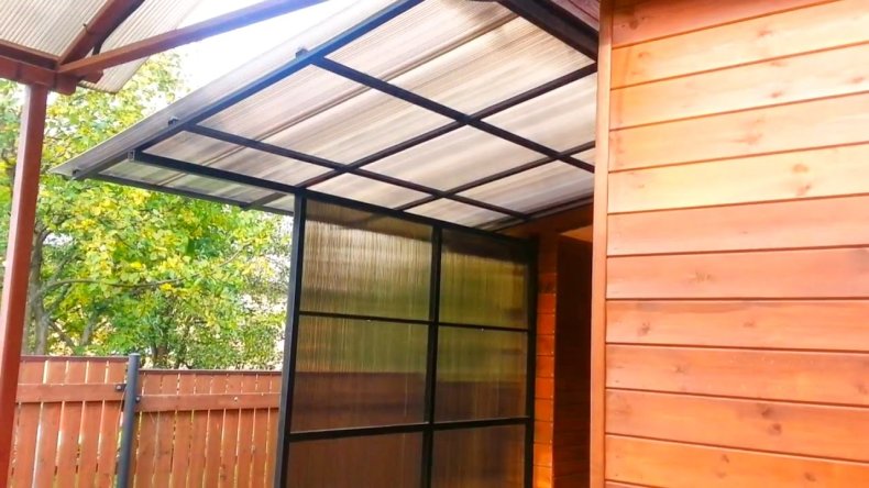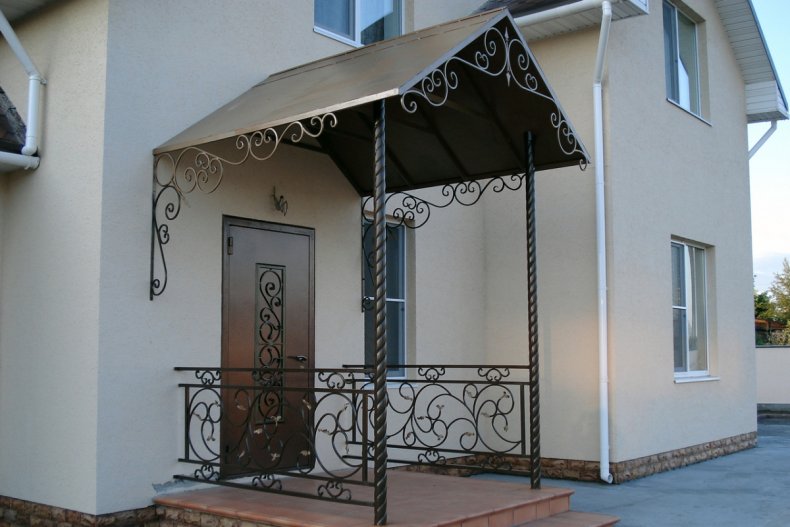 Многие люди частных домов и дач имеют крыльцо. Это сакральное место, ведущее в обитель человека. Важно иметь козырёк, чтобы защитить себя от осадков и палящих лучей.
