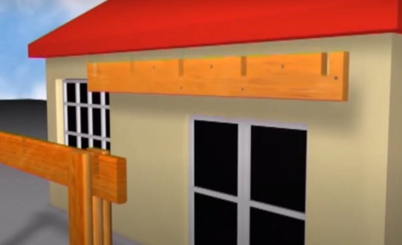 - Нужно сделать прямоугольной короб, который станет служить основой для козырька. Ту часть стенки, которая будет крепиться к стене, стоит сделать выше, чем переднюю часть. Получится наклон. Сверху выкладывают доски. Крепить их нужно гвоздями или саморезами. Получится прямоугольник с наклоненной крышей. Так делают для того, чтобы осадки не скапливались на поверхности сооружения.