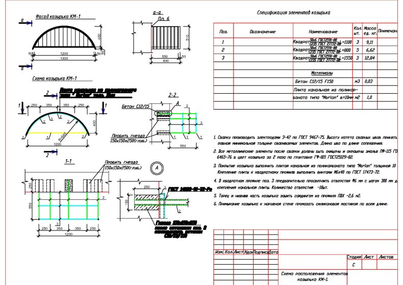 Можно выполнить очень простой вариант козырька. Однако для начала стоит помнить про важный момент. Всегда нужно иметь чертёж. Чем он лучше выполнен, тем лучше для проведения работ. Об этом моменте не стоит забывать.