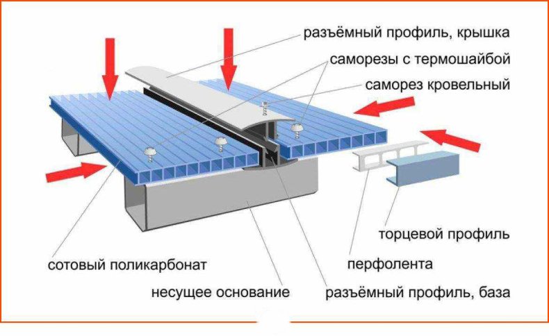 Сверху каркас покрывают поликарбонатом или же акриловым стеклом, характеризующимся высокой прочностью.