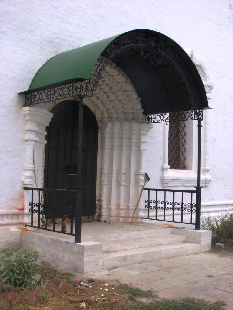 Арочный козырёк должен надёжно крепиться. Дело в том, что металл является достаточно тяжёлым материалом, поэтому важно продумать прочное крепление, которое не подведёт.