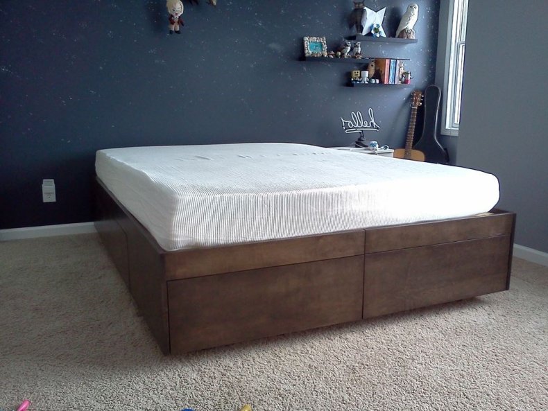 При планировании установки кровати, сразу предусмотрите размер матраса, чтобы кровать соответствовала стандартам.