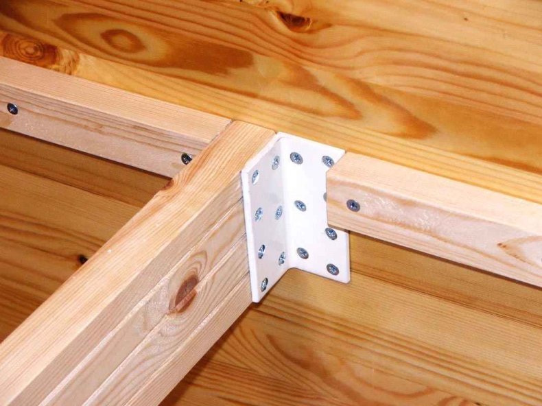 - Поспособствовать прочности каркаса позволят угловые соединения, которые будут использоваться параллельно с брусками другого размера.
