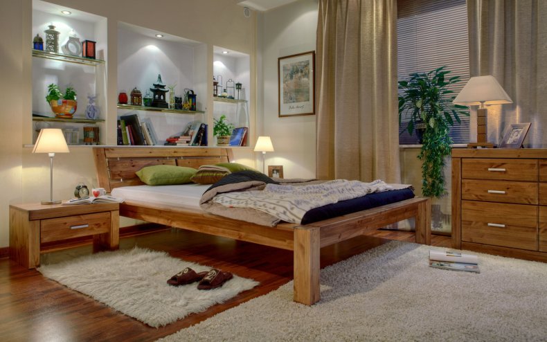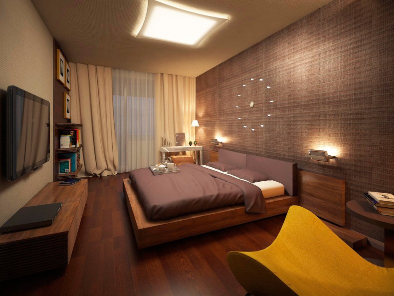 - В зависимости от площади комнаты, заранее продумывайте, стоит ли ставить кровать по центру комнаты.