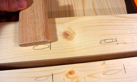 - Выполнить разметку брусьев, применяя специальный измерительный уголок. начертить линию среза. Сначала создайте схематичный отрезок среза и воспользуйтесь для среза стуслом.