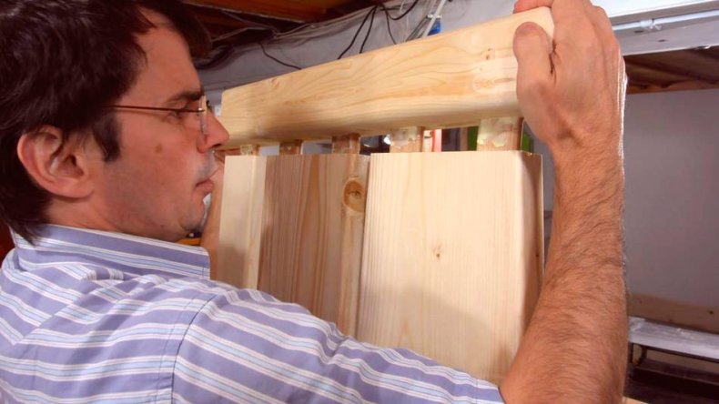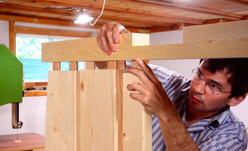 Выполнение каркаса может быть выполнено как на полу, так и с помощью четырех вспомогательных предметов, которые послужат стойками. Помните, что каждая из частей каркаса будет состоять из 3 брусьев, которые впоследствии собираются в единую конструкцию.