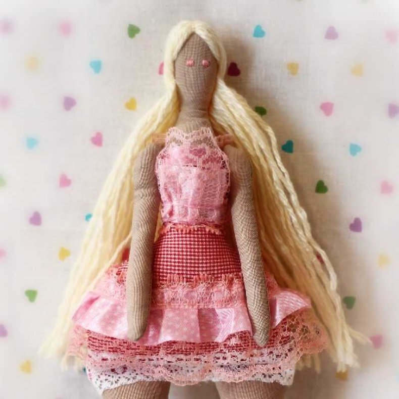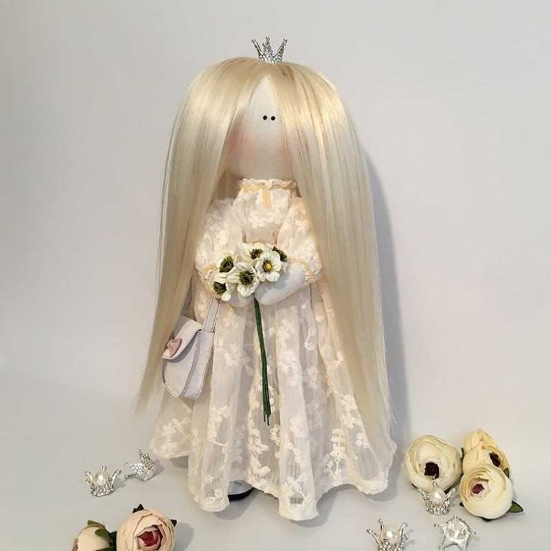Дополнить образ куклы помогут кружева, ленты, стразы, пуговицы. Всё зависит от творческой фантазии автора.