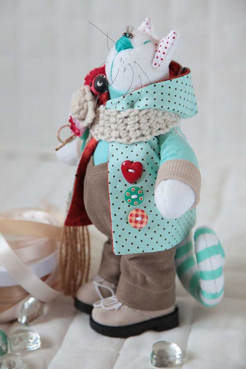 На бумаге рисуется выкройка туловища с мордочкой, ушками, лапки в виде сапог, а хвост – в виде колбасы.