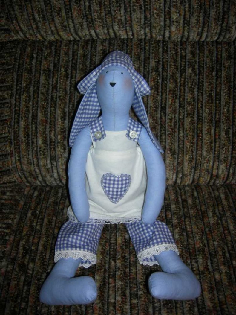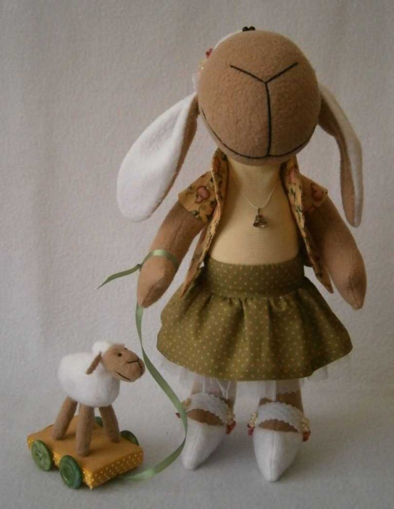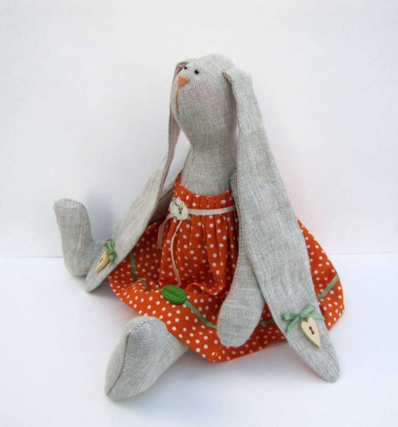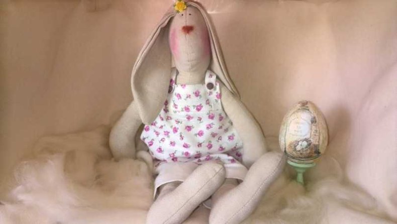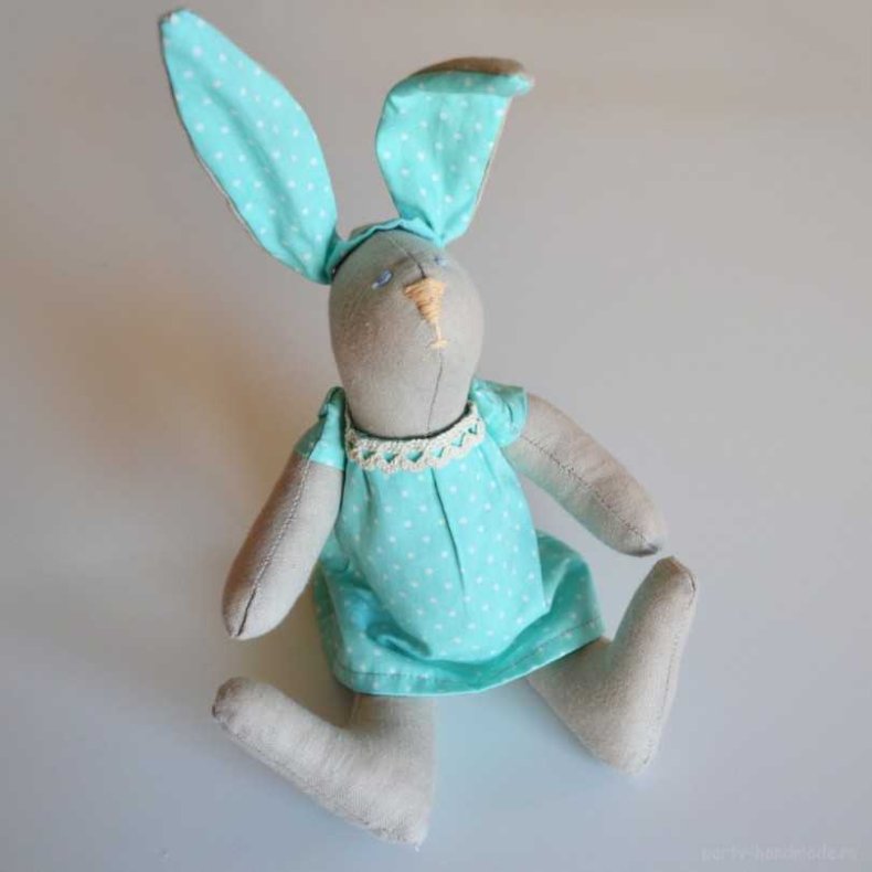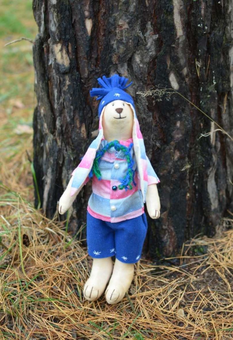 Вышить носик и глазки, изготовить наряд для зайки.