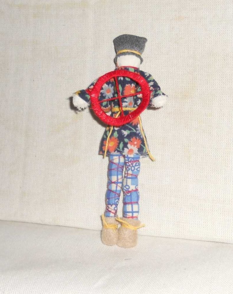 К примеру, характерные для тряпичных куколок румянец на щеках и маленькие чёрные глазки.