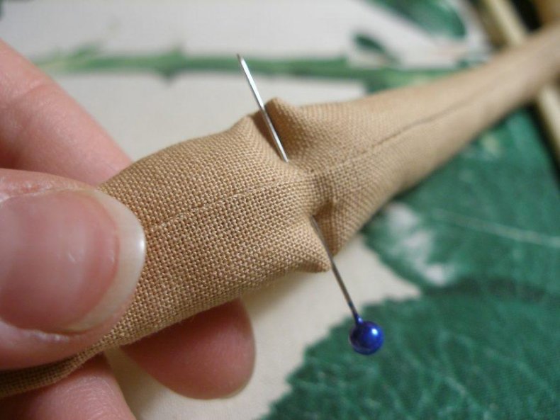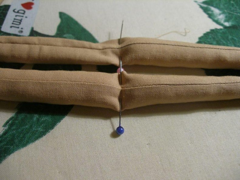 - Зафиксировать английскими булавками части для пришивания их на швейной машинке.