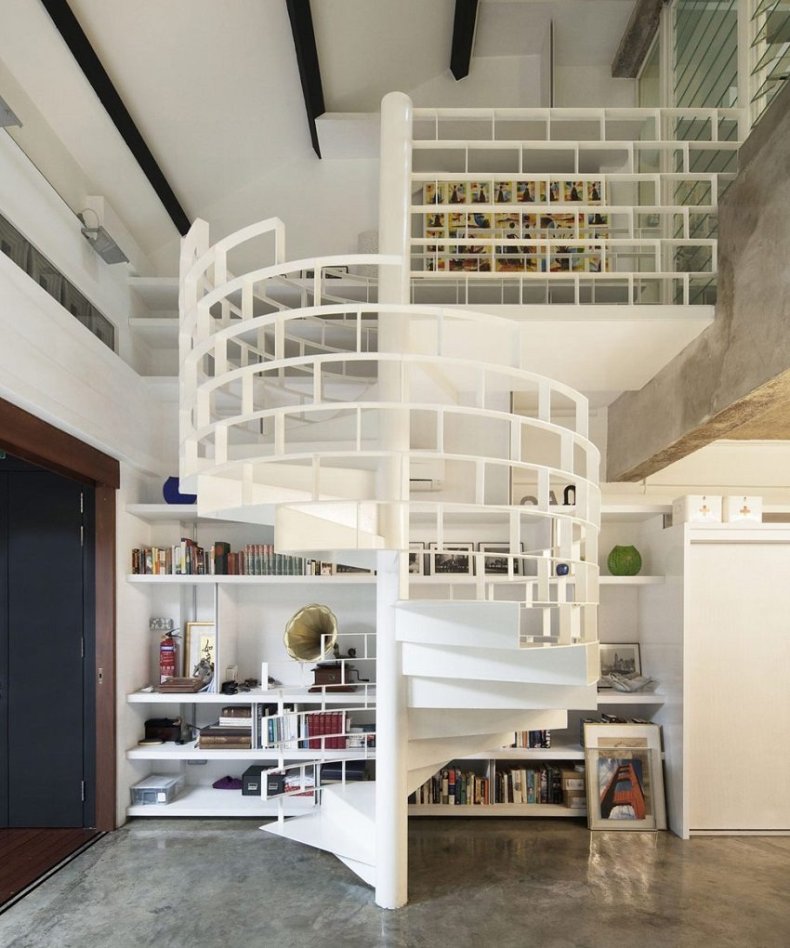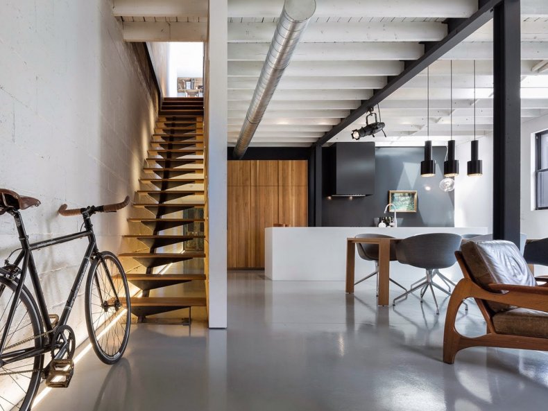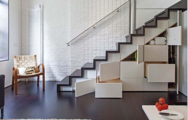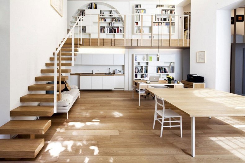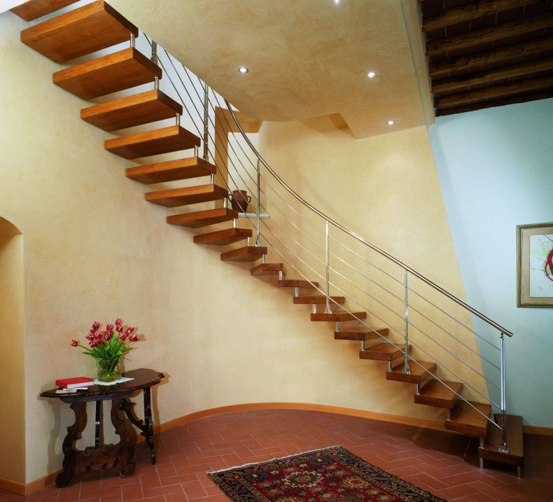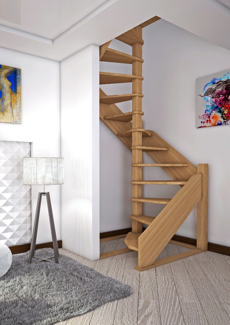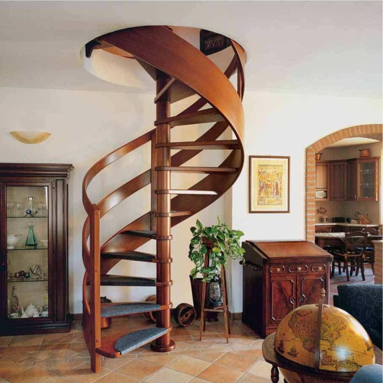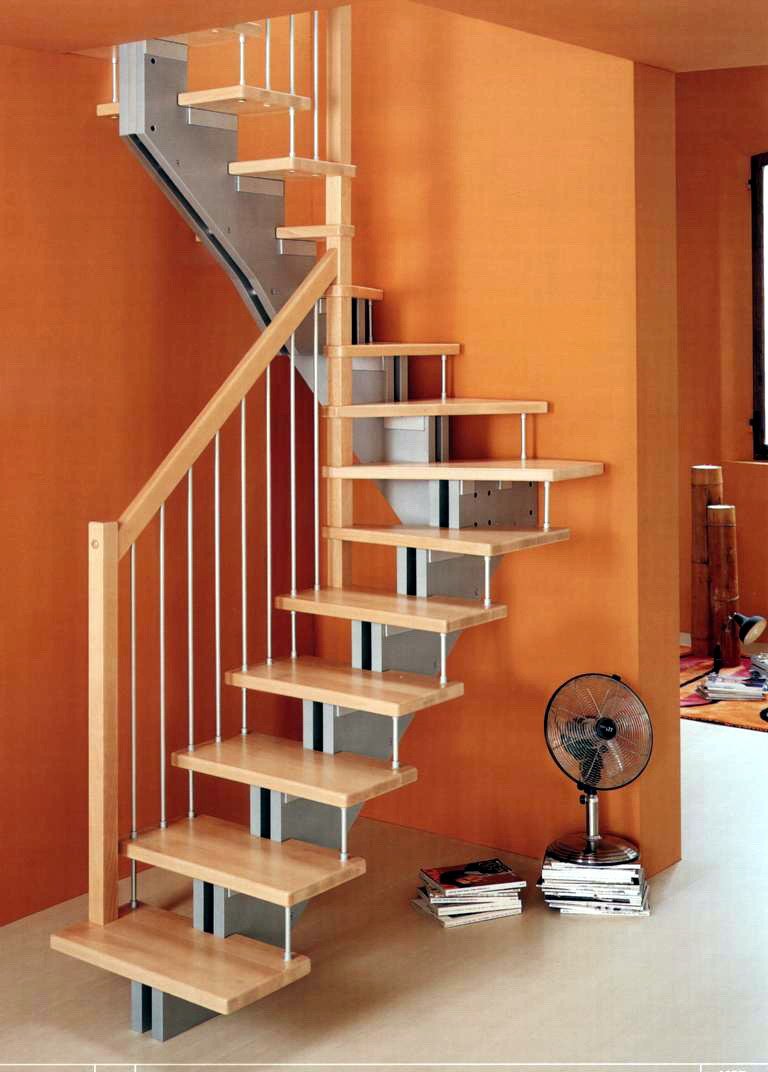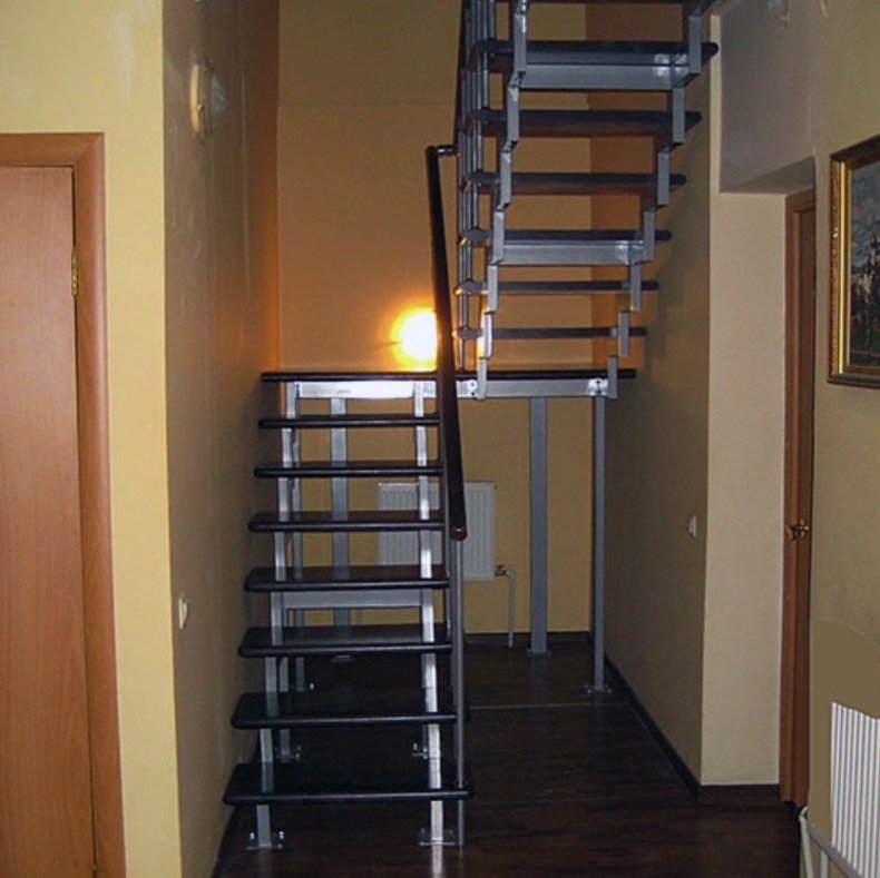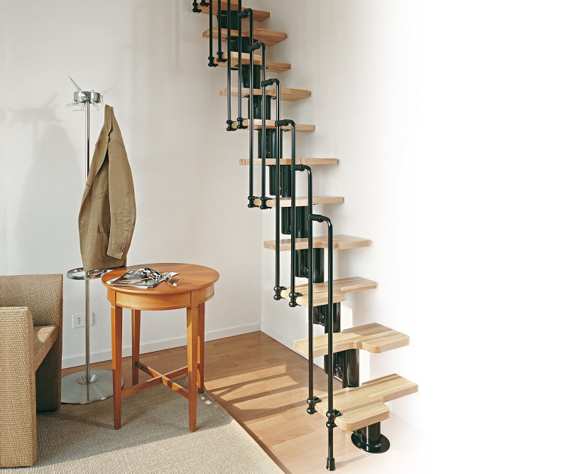 Этот тип будет полезен для экономии пространства, потому что их главным назначением является подъем наверх людей, а не крупногабаритных объектов. Исключительно из дерева такую лестницу не построишь, потому что опорой являются металлические штанги или трубы.