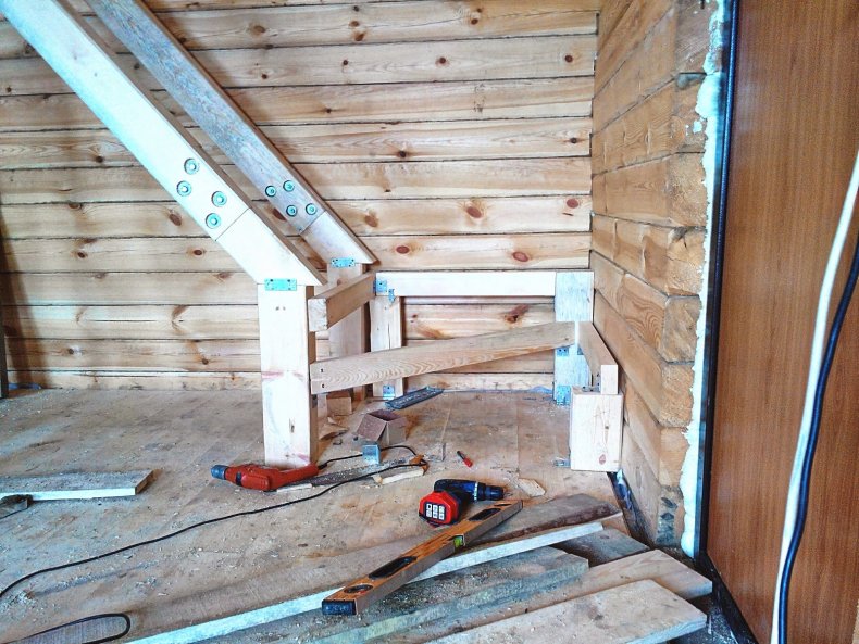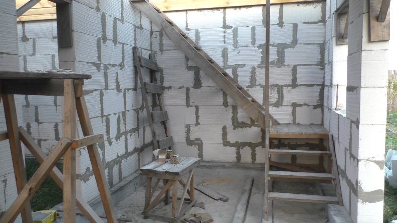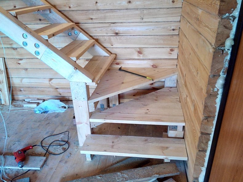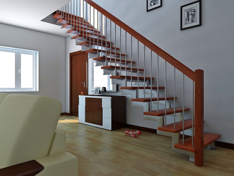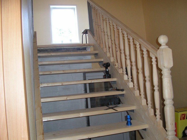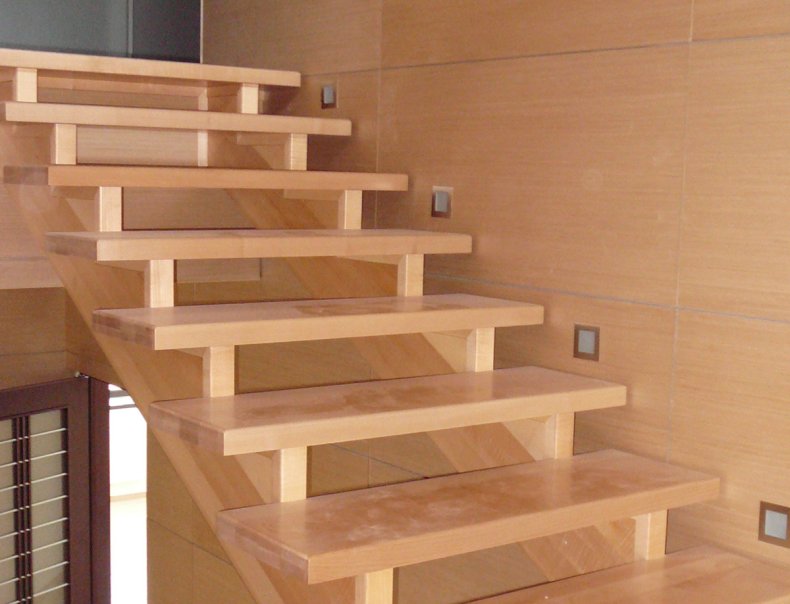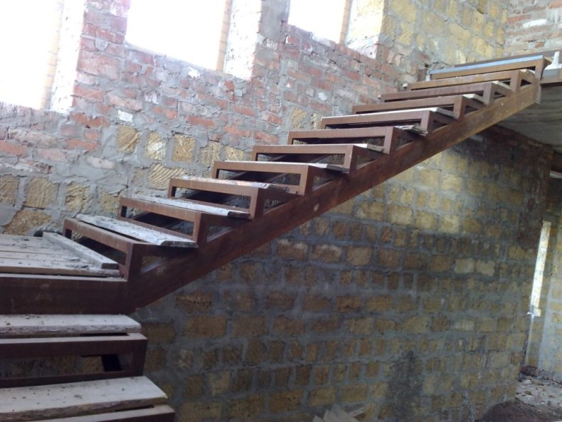 Перед началом монтажа тщательно размечается так, чтобы ступеньки располагались ровно. Иногда используется как опорная функция (наподобие косоура), особенно при креплении лестницы к стене с одной стороны. - Косоур.