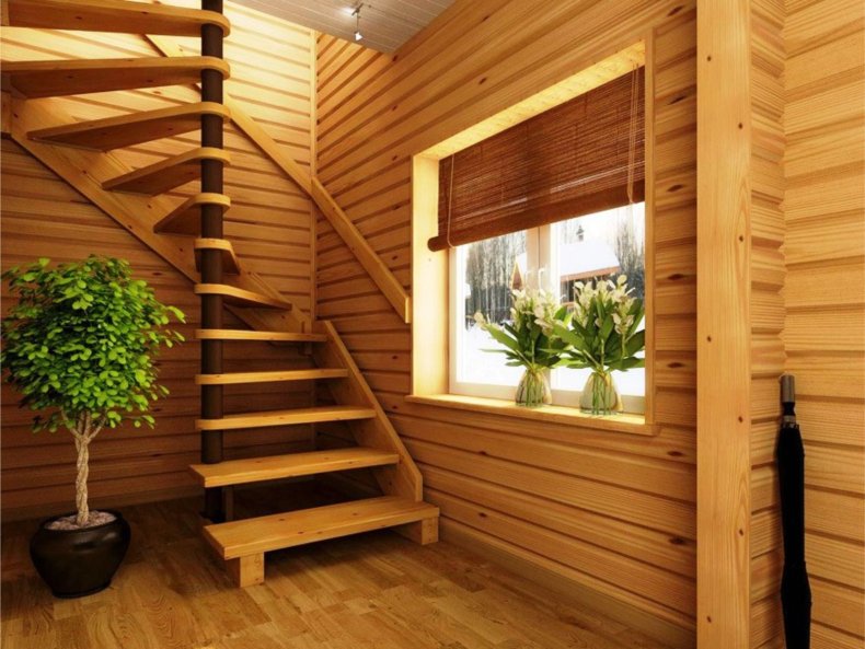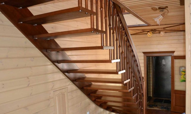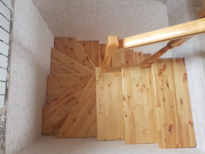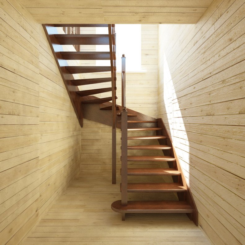 Лестницы с такой конструкцией устанавливаются снаружи или внутри постройки на косоурах или тетивах. Основным фактором для выбора этого типа становится его эргономичность, поэтому можно применять одно- или двухмаршевые версии с междуэтажной площадкой. - Винтовая.