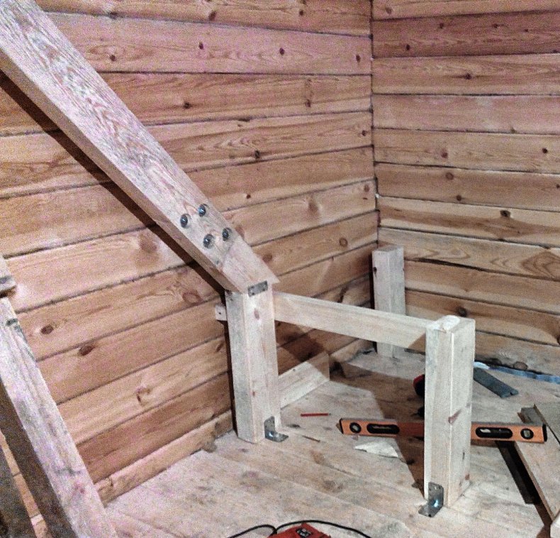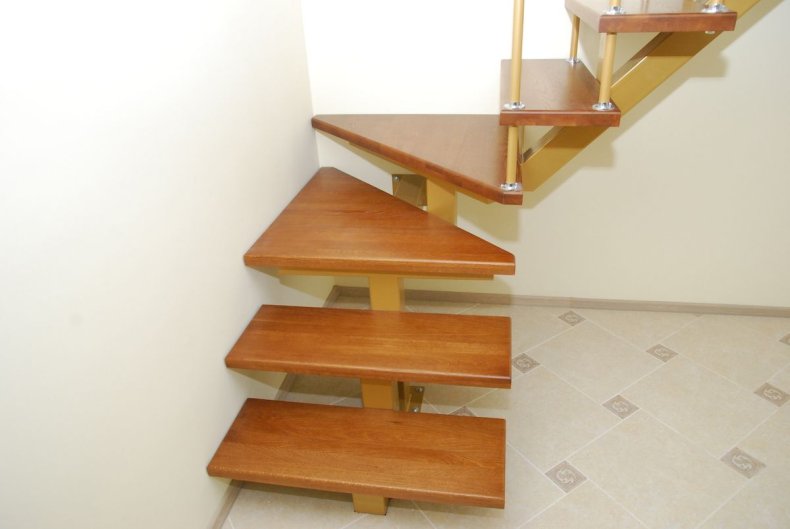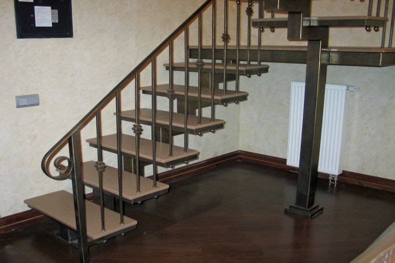 Является опорной балкой с вырезанной гребенкой. На него устанавливают ступени и подступенки. - Опорные столбики.
