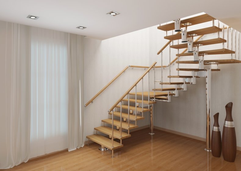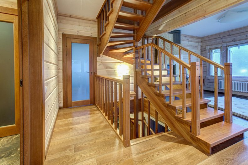 Лестницы для частных построек состоят из одного или сразу нескольких соединяющих уровни между собой пролетов, либо этажи с междуэтажной площадкой.