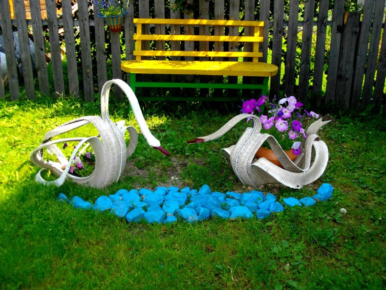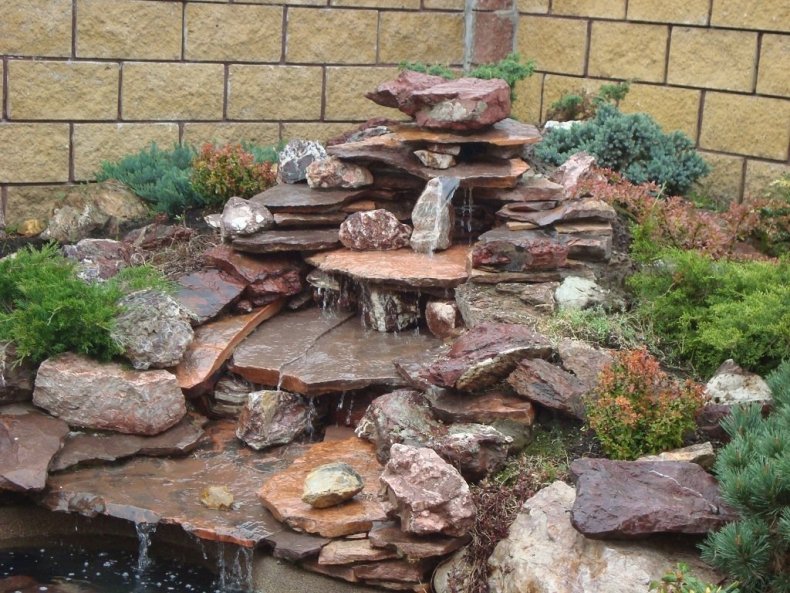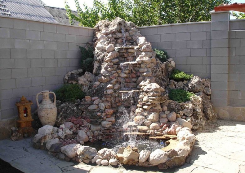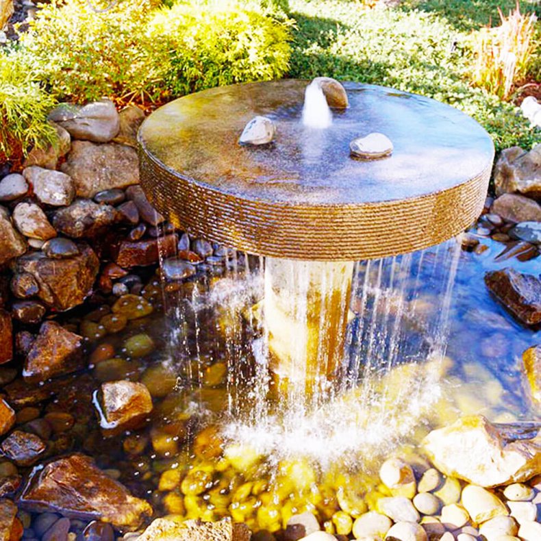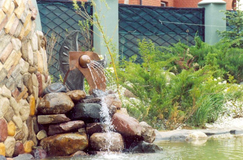 Часто используемый вариант – когда вода вытекает из нижней части кувшина и струйками стекает по камням в декоративный пруд. Проявите фантазию, и ваш водопад будет радовать всех ваших друзей и соседей.