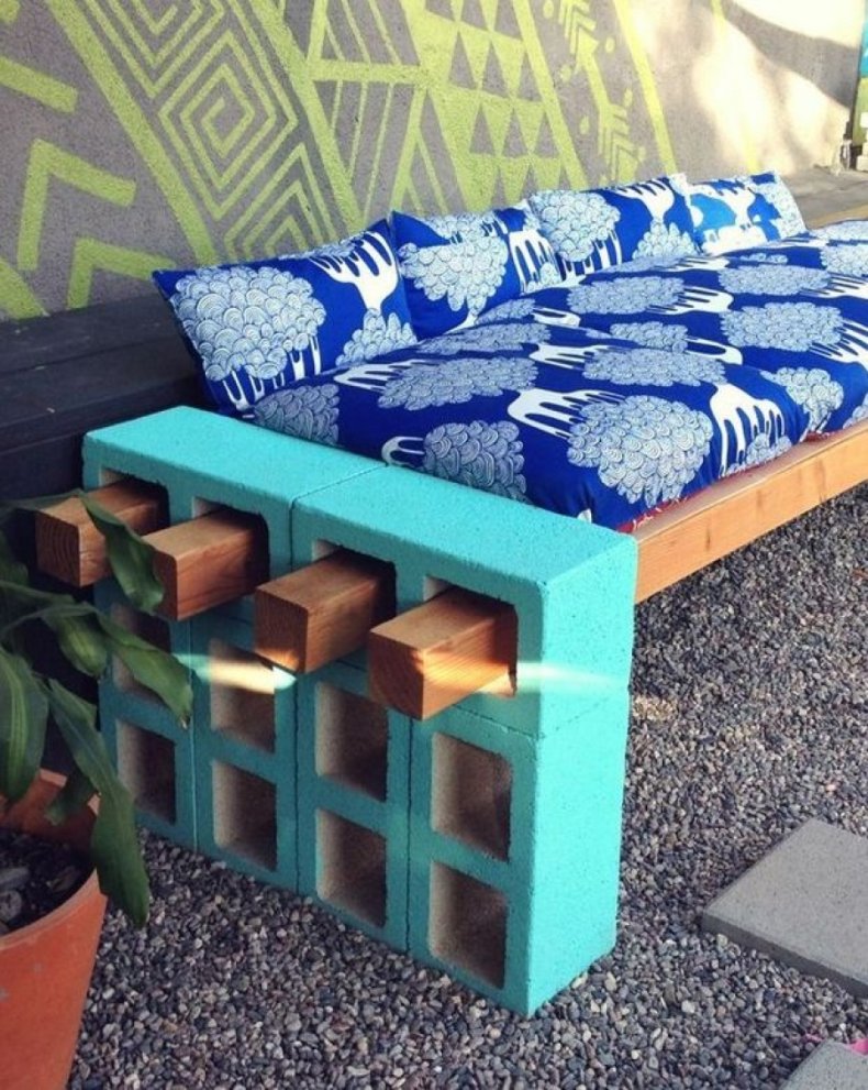 Вот как нам удалось сделать садовую скамейку – крепкую и прочную! Теперь вам остается только отшлифовать дерево и покрасить его в любой цвет, который вам нравится. Если вы выбрали паллеты вместо классического дерева и хотите сохранить привлекательный цвет материала, просто покройте его прозрачным лаком.