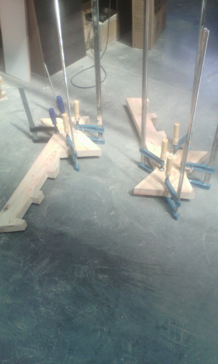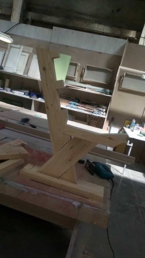 В результате получается форма, в которой спинка скамьи и задние ножки выгнуты назад. Более длинный рукав будет спинкой. Вырежьте этот контур из двух досок.