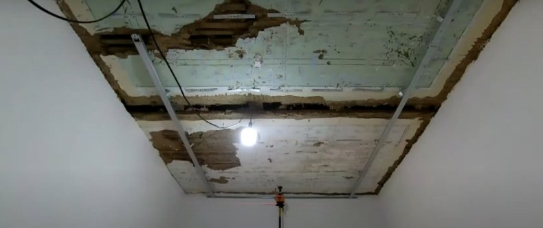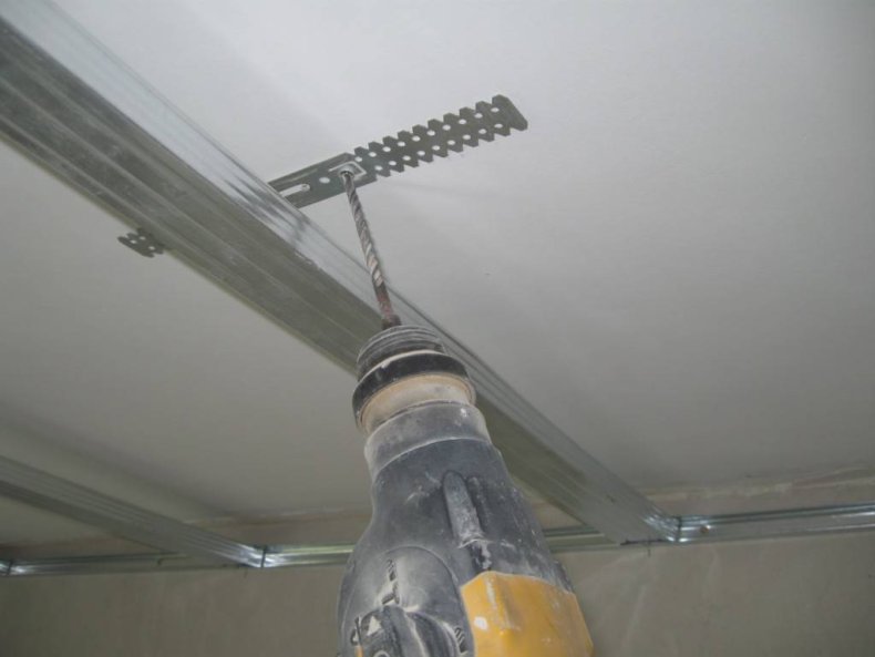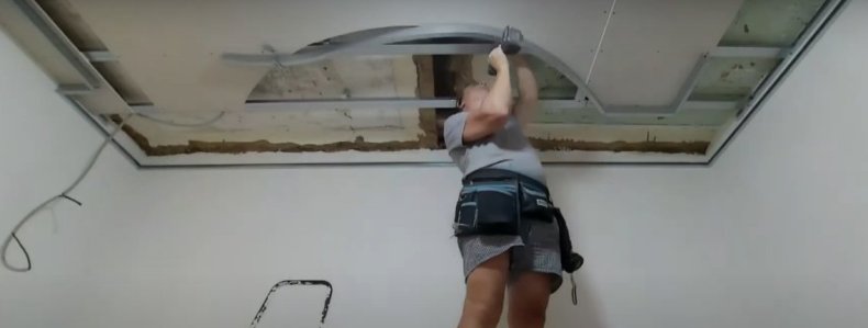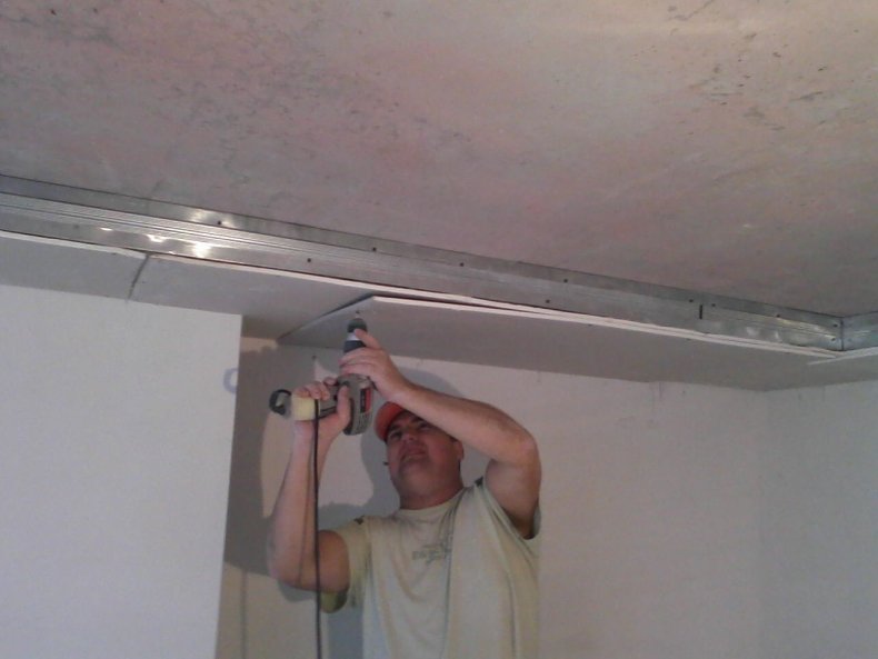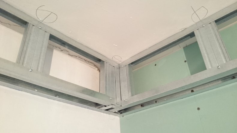 После того, как разметка завершена, можно приступать к монтажу направляющих профилей, которые будут расположены на прилегающих стенах и потолке.