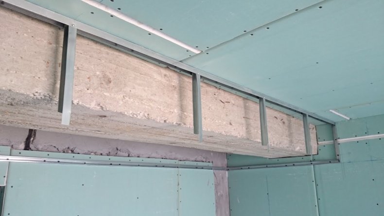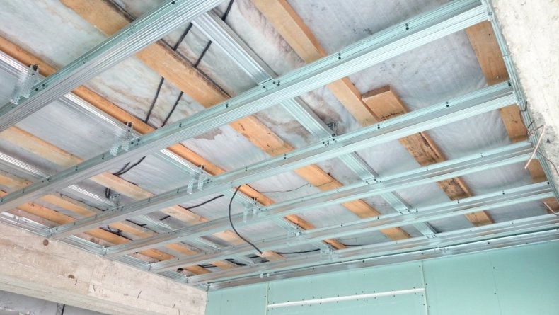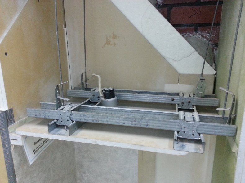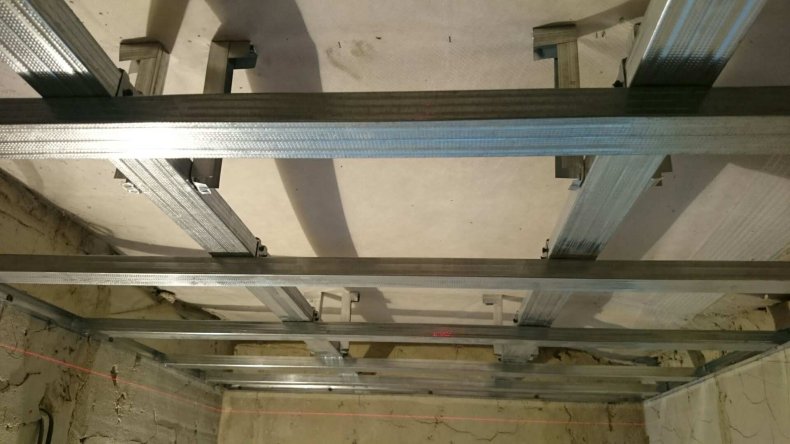 Кроме профиля и гипсокартона потребуются так же металлические уголки, деревянные брусья, виброподвесы, шпатлевка, грунтовка, армирующая лента, уплотнитель.