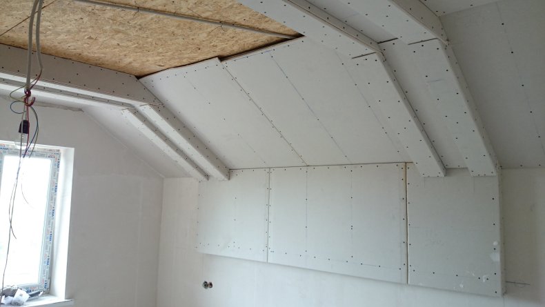 - Только после прокладки коммуникаций можно монтировать финальную часть гипсокартона.
