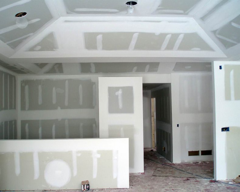 Последнее время более популярным вариантом считается отделка стен и потолка гипсокартоном. Этот вид отделочного материала получил свою популярность благодаря возможности выравнивания даже самых проблемных поверхностей.